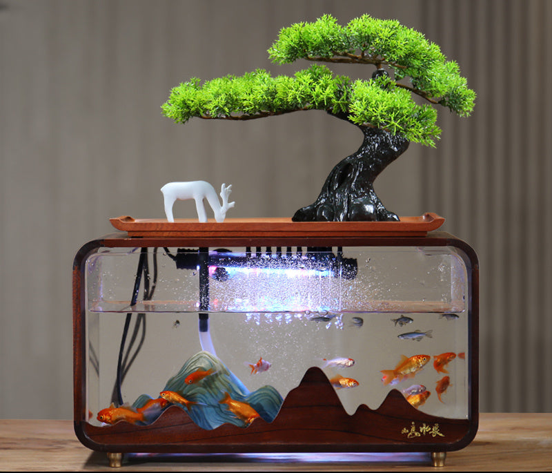 E: Black walnut fish tank flowing water ornaments - accompanied by a deer - welcome pine