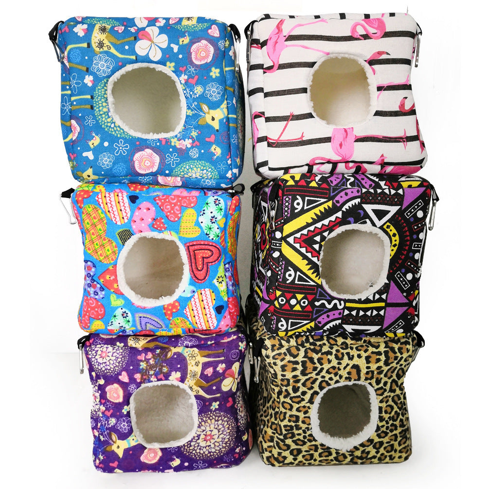 Features: The new yurt style replaces the old products. The velvet thickened white cotton velvet adds to the beauty and warmth of the cotton nest. The 1cm high-density rebound sponge makes the cotton nest more three-dimensional. Make the cotton nest not easy to deform. The opening is designed using the wild habits of animals, similar to a tree hole. With 4 hooks on the top, the hanging nest is more in line with pets' climbing habits.