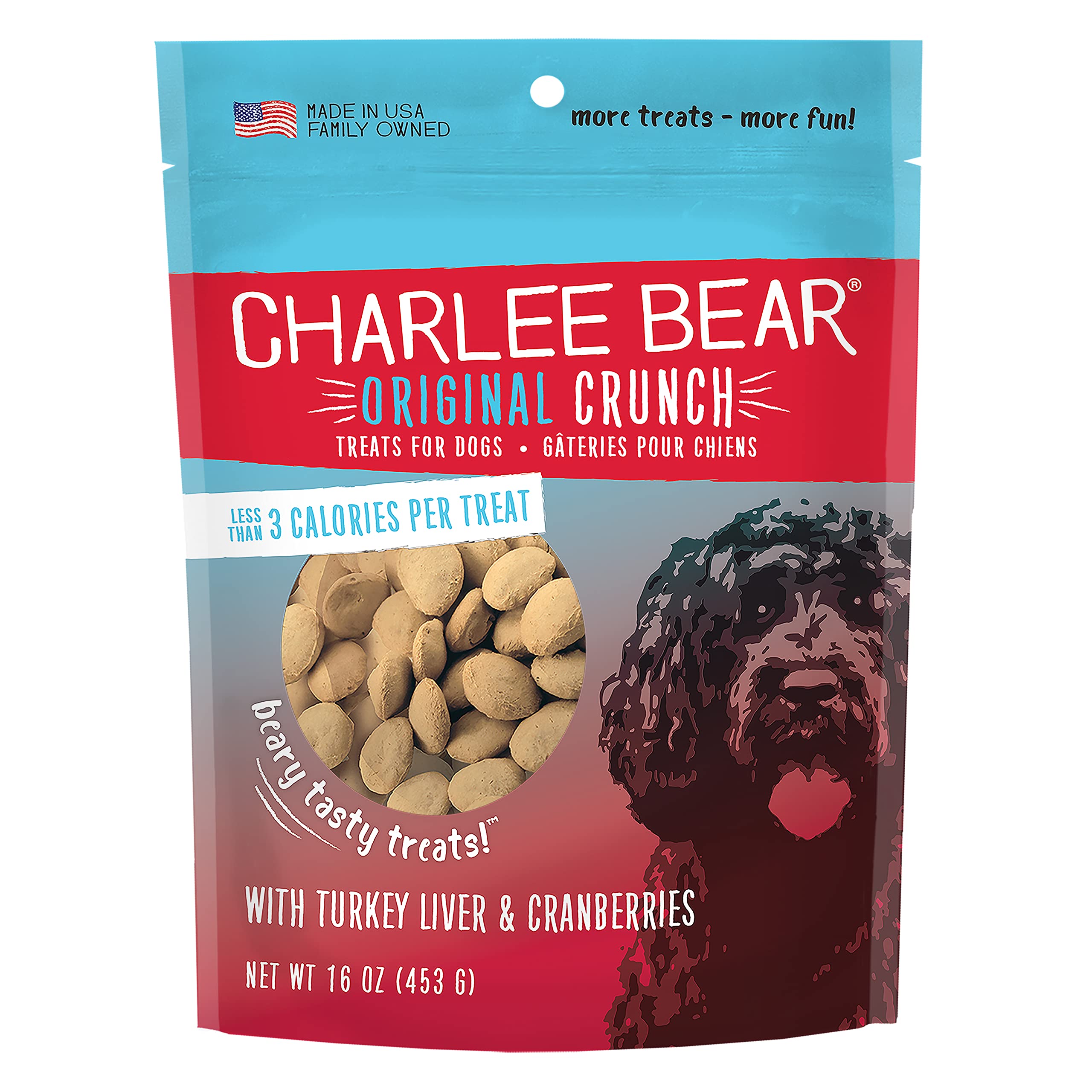 Details: Charlee Bear Original Treats are crafted with wholesome ingredients like real turkey liver for protein and antioxidant-rich cranberries right here in the USA. They're baked to perfection for irresistible crunchiness and taste.