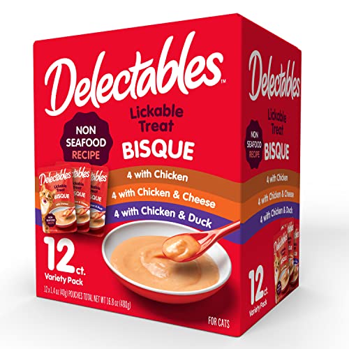 Details: Your favorite lickable cat treats are now available in a Non-Seafood Bisque formula! Hartz Delectables unique wet treats combine real ingredients with a smooth sauce, your kitty will be begging for more! This nutritious seafood-free recipe entangles the meat and sauce together so your cat can not only lick up the sauce but enjoy (and gobble up!) the meat too. Even the most finicky eaters enjoy this delectable wet treat – use the single serve pouch as a cat food topper, a quick snack, or a special treat and your cat will love you back! This pack includes 12 – 1.4-ounce pouches of pure kitty satisfaction.