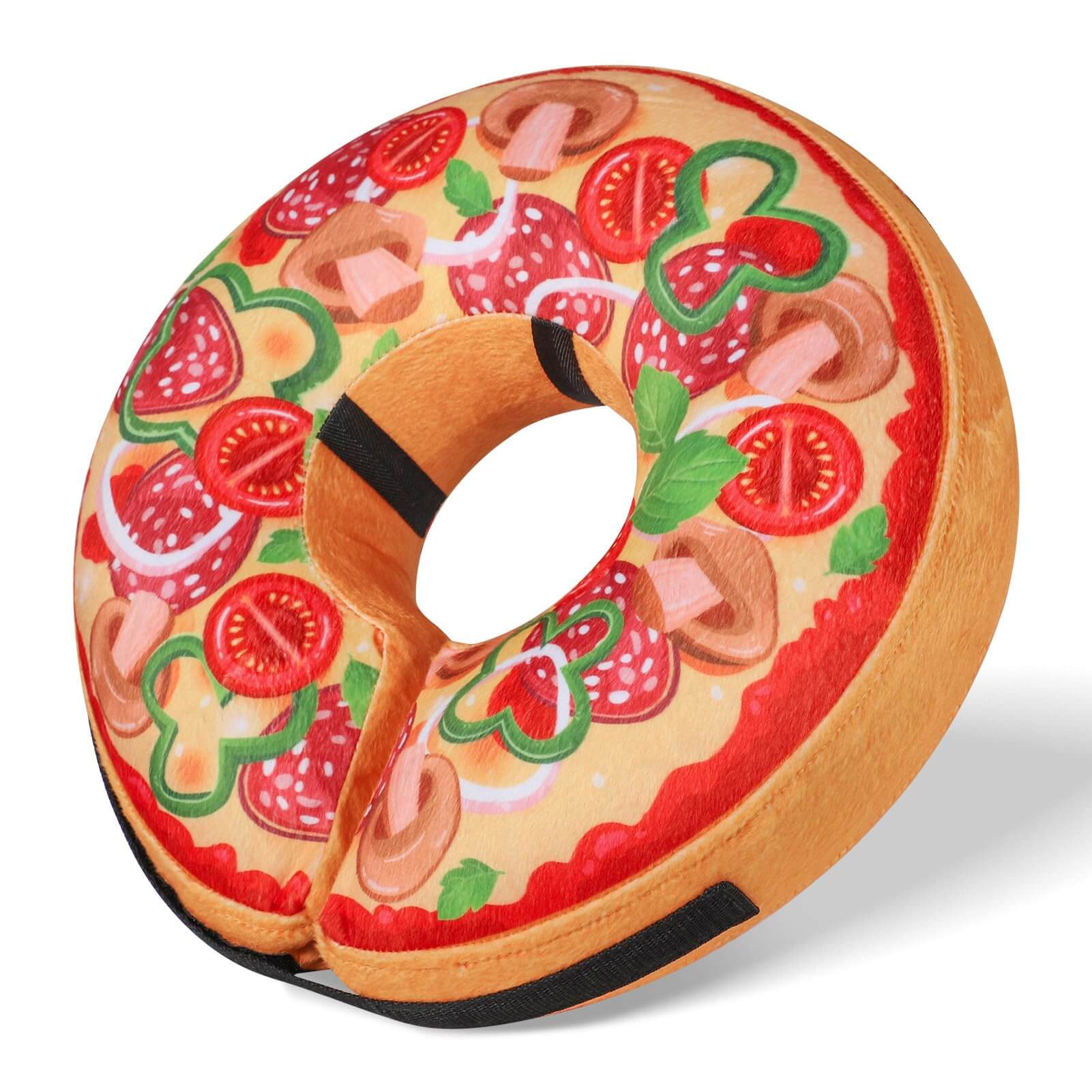 Grand Line Pizza Inflatable Collar for Dog and Cat, Soft Protective Recovery Cone After Surgery, Blow up Pet Donut Collar Cone, E-Collar Alternative Does not Block Vision (Cartoon, Small)