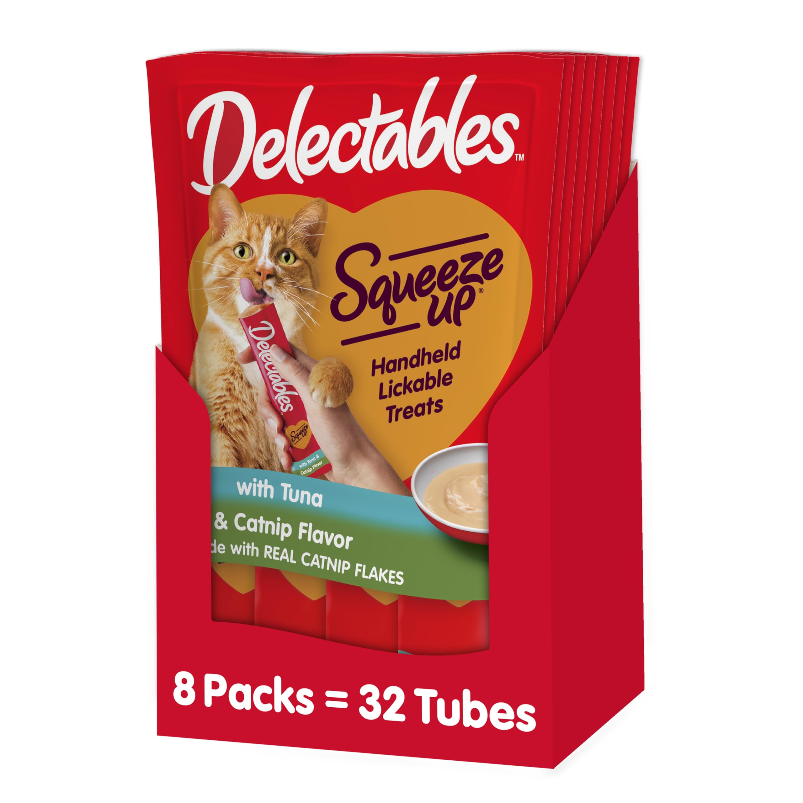 Details: Hartz Delectables Squeeze Up are handheld lickable cat treats that will change treating time to a fun and loving bonding experience between you and your cat! Squeeze Up tubes come in a thick and creamy puree texture with enticing flavors that are so delicious, your cat will paw for more! NO Mess, ALL love! These lickable cat treats are great as a handheld treat, in a bowl, or as a topper – they are as versatile as they are irresistible. Squeeze Up is 100% grain-free, without any added fillers, by-products, or preservatives, so nothing can interrupt all the love that can now go into treating time… and they’ll love you for it! Deliciously, De-Lick-able, Delectables!