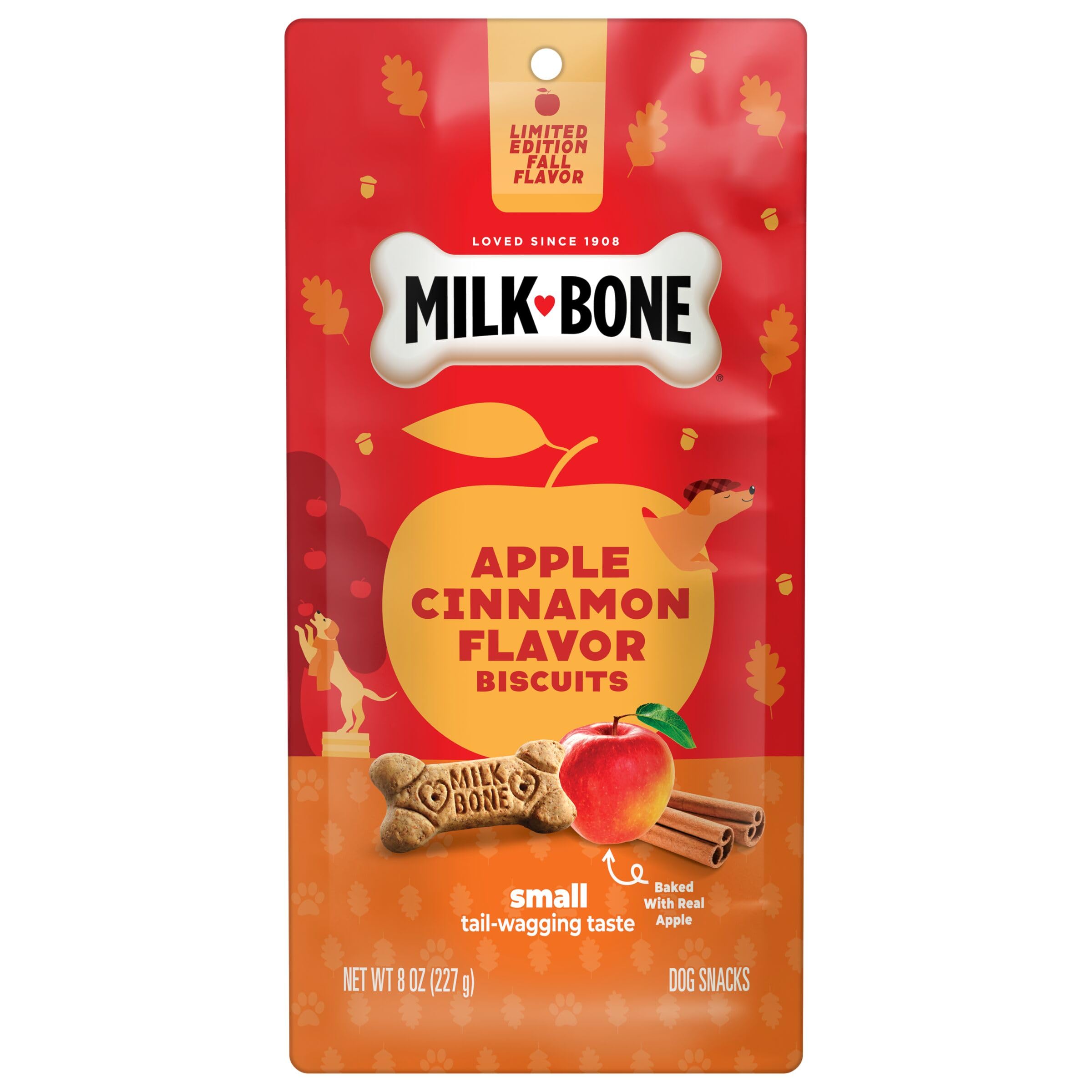 Details: Give your dog a taste of holiday fun with Milk-Bone Apple Cinnamon Flavor Biscuits. These small holiday biscuits are easy to enjoy for dogs of all sizes, and their crunchy texture helps freshen breath and reduce tartar build-up — perfect for sloppy doggie kisses under the mistletoe. You can feel good knowing that these delicious treats are baked with real apple and contain vitamins and minerals (12 to be exact). With their holiday-friendly flavor, these limited-edition dog treats are a winter wonderful way to treat your dog all season long. Snag a box or two before they’re gone to give your dog their happiest paw-liday season yet.