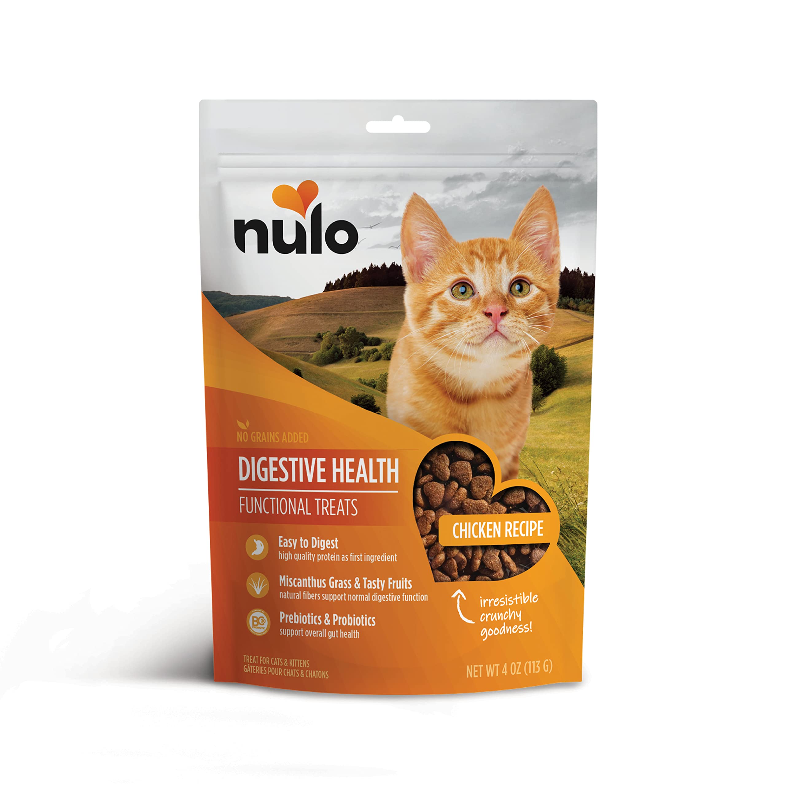 Details: Nulo Crunchy Cat Treats Digestive Health Chicken Recipe for cats and kittens provides natural fibers and probiotics shown to support digestive health. With chicken as the first ingredient, paired with gut-supporting ingredients and coconut oil, this functional reward has minimal calories and maximum flavor. These treats support digestion and clean teeth for cats and kittens of all ages.