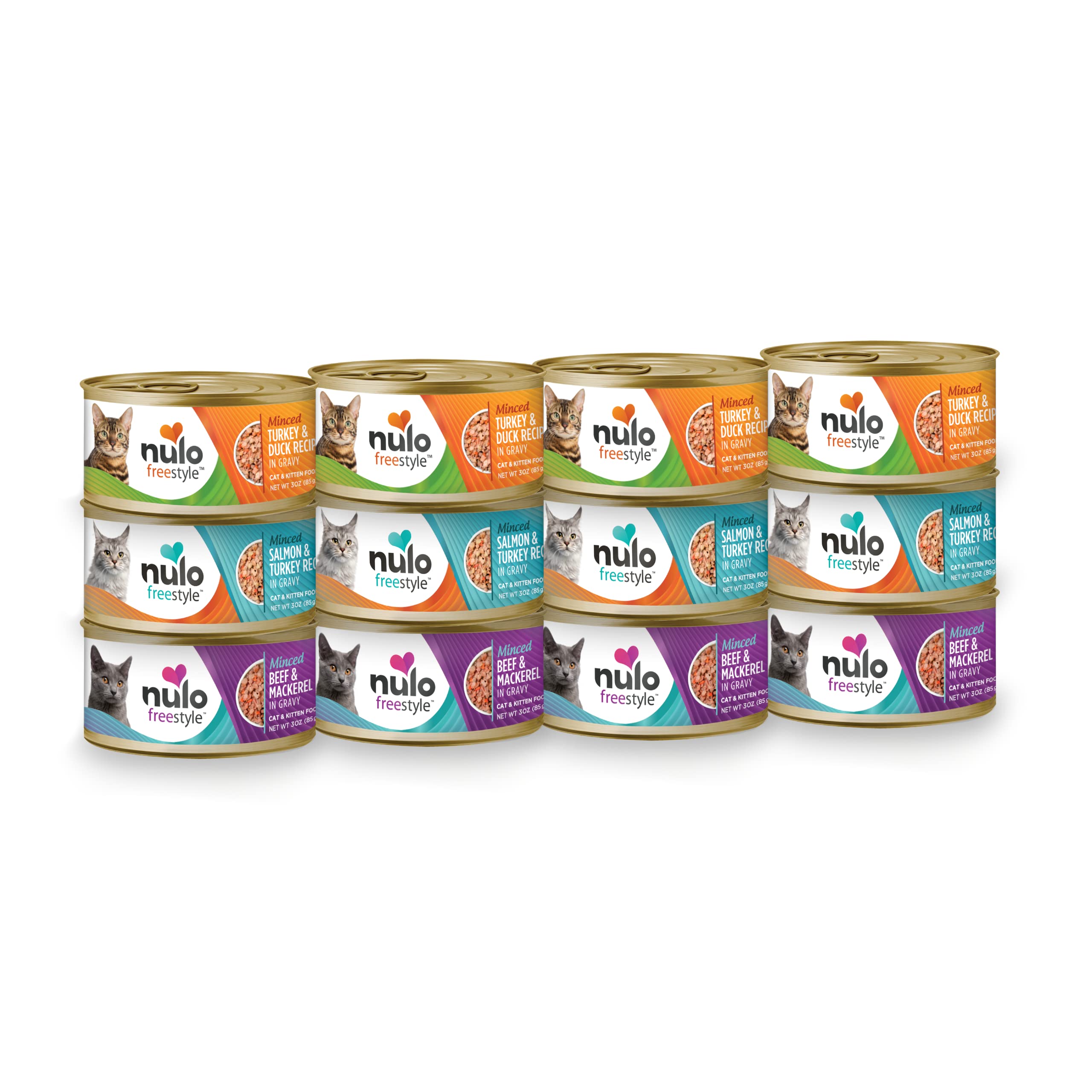 Details: For the Jungle cat within cats are inherently carnivorous, and foods rich in proteins more closely resemble their natural diet than grain-based carbohydrates. Nulo Grain Free Canned wet food contains more of the ingredients that your cat would be eating in the wild. Nutritionally balanced and delicious, our special blend of 5 animal protein sources keeps your cat full longer and supports weight management. Your house Panther will stay quick and limber so he can pursue that elusive Red dot with gusto. a difference you can see Nulo Grain Free wet cat food is made in the USA with 100% all-natural ingredients. What you won’t find in our proprietary recipe are corn; wheat; soy; carrageenan; White potatoes; tapioca; artificial colors, flavorings or preservatives. Because grains are known to aggravate feline Food sensitivities, it is quite possible that your cat will be relieved of irritations and digestive issues that you hadn’t realized were related to his grain-heavy diet. Nulo’s protein-rich formula will keep your cat looking and feeling great. for every stage of your cat’s life the amount of food that your cat needs will depend upon activity level, age, environment and breed. Nulo Grain Free wet cat food should be allocated at 1 Can per 6-8 lbs of body weight per day. Feed up to twice the adult amount to kittens. During gestation and lactation, feed up to 3 times the normal adult amount. Unused portions can be covered and refrigerated for later use. Always provide access to fresh water. ensure your cat’s health now and long into the future. Add Nulo Grain Free Canned cat food to your cart today.