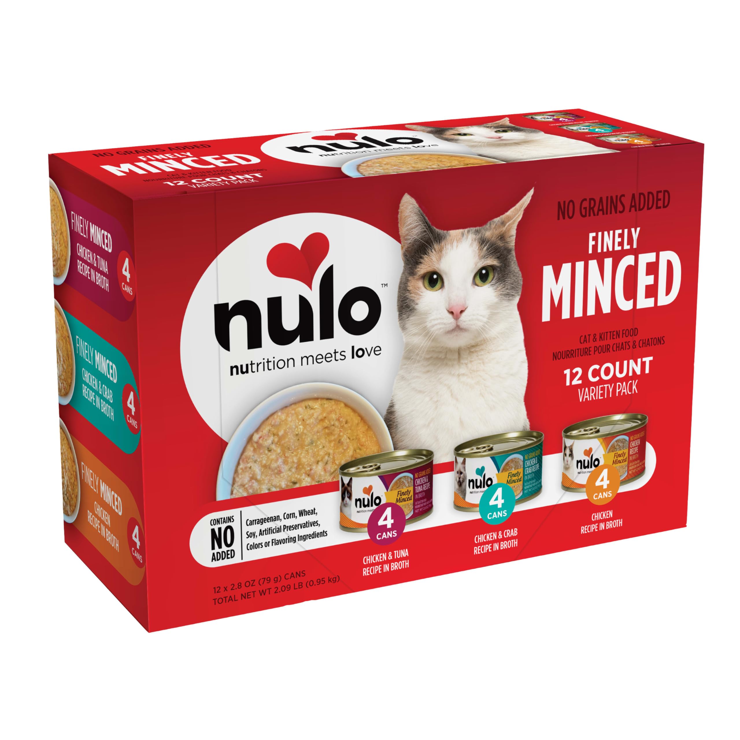 Details: Nulo Finely Minced recipes will satisfy even the pickiest eaters with a savory flavor from rich animal protein and an irresistible texture. This complete and balanced meal in a tasty broth will give them the flavor they want plus the hydration they need. Contains NO grains, carrageenan, corn, wheat, soy or artificial preservatives, colors or flavoring.