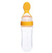 It is used to feed semi-liquid complementary food, bottle-grade liquid silica gel, as long as the bottle is gently squeezed, the food will flow out from the spoon hole, which is convenient for feeding, allowing the baby to smoothly transition to the solid food stage.