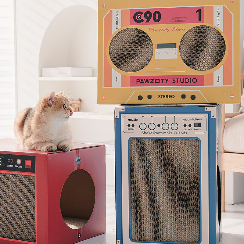 Color classification: Audio cat box-red, audio cat box-blue, tape cat scratching board-black and yellow, tape cat scratching board-yellow, tape cat scratching board-black red, tape cat scratching board-black blue